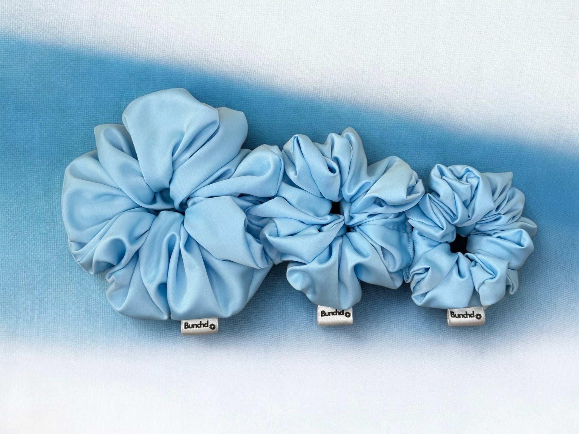 Cool, calm, and effortlessly cute—the Baby Blue Trio Scrunchie Set is your new go-to for everyday hair magic. With Large, Medium, and Midi sizes, you’ve got the perfect scrunchie for any style, from voluminous buns to subtle half-ups. Made with smooth, gentle fabric in a dreamy pastel blue, these scrunchies bring softness to both your strands and your look.