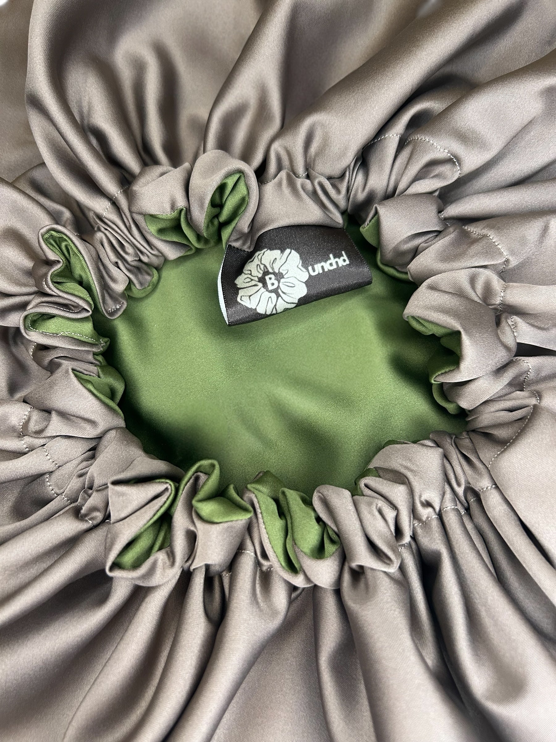 This Reversible Micro Satin Bonnet features a sleek, luxurious design and feel in a rich brown and olive green colour combination, perfect for protecting your hair overnight. Made from soft micro satin fabric, it helps reduce friction, preventing hair breakage and preserving moisture for healthier, smoother locks. Whether you're looking to maintain your hairstyle or protect your tresses while you sleep, this stylish bonnet combines function with elegance.