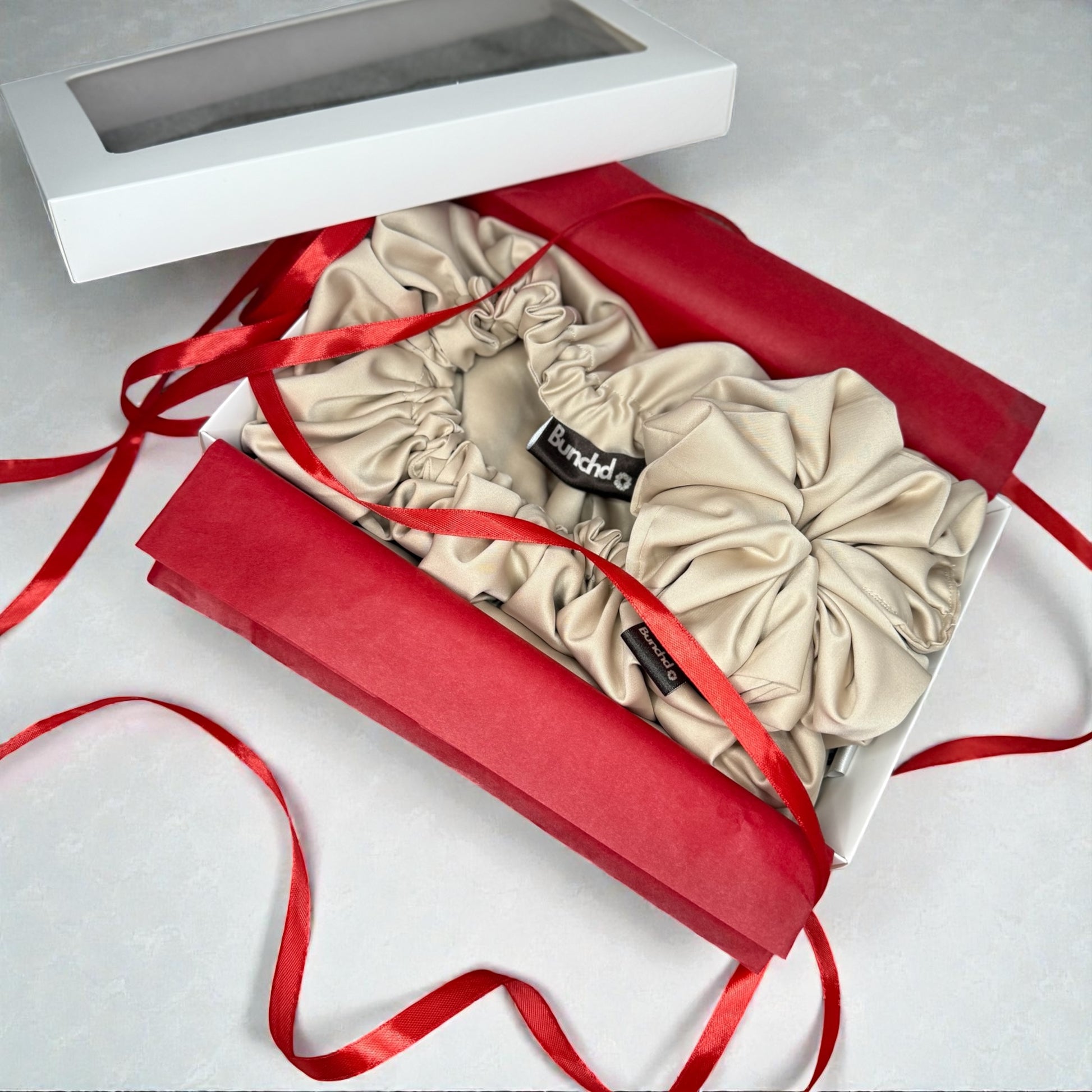 Included in the gift box is a Pillowcase, Bonnet and a Medium sized Scrunchie.